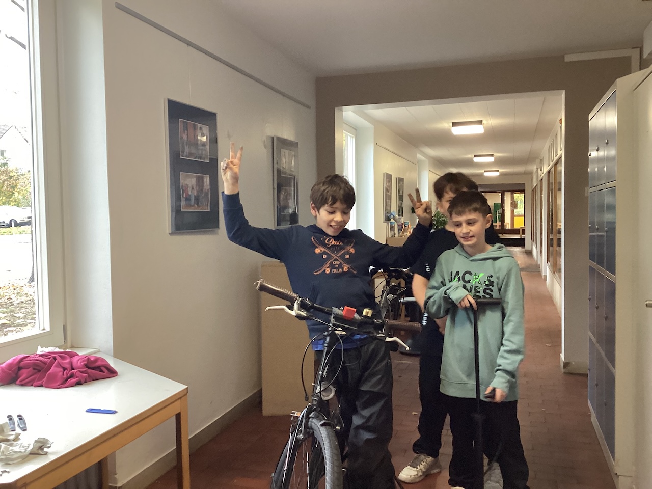 Wir haben wieder Fahrräder repariert, geputzt und verkehrstüchtig gemacht. Erwachsenen- und Kinder-Fahrräder können gegen Spende abgeholt werden. Von den Einnahmen kaufen wir Werkzeug und Material. Bei Interesse kontaktieren Sie gerne Herrn Mörz unter j.moerz@hg-gym.de . Unsere kleinen Monteur:innen nehmen auch gerne Aufträge entgegen.