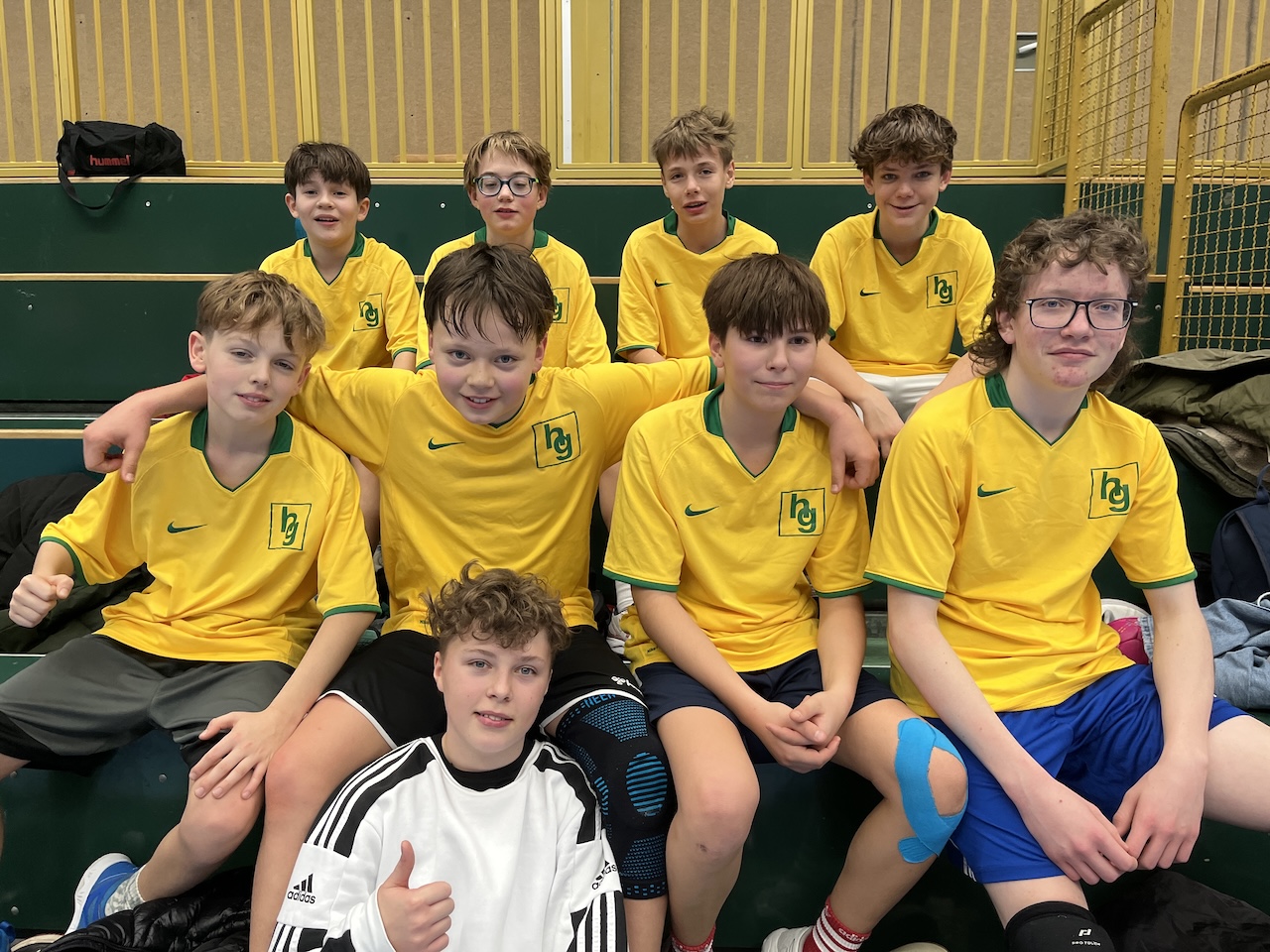 Unsere U16-Teams haben das Hainberg-Gymnasium beim Kreisentscheid des Bundeswettbewerbs „Jugend trainiert für Olympia“ an der IGS Bovenden hervorragend vertreten. Unsere Jungen belegten mit einer sehr jungen Mannschaft nach einem abschließenden Sieg gegen die IGS Bovenden den 3. Platz. Henry Fieseler war dabei ein guter Rückhalt im Tor, Erik Rumiantsev, Len Harms und Ben Bornemann überzeugten mit sicheren Vorstellungen auf ihren Positionen, Nilay Hesse und Bosse van Cruchten organisierten das Spiel souverän aus dem Rückraum und trugen als sehr erfolgreiche Torschützen zum Mannschaftserfolg bei, David Griethe und Jakob Klinck sorgten für viel Bewegung auf den Außenpositionen und viele Tore und Paul Wacker spielte auf der rechten Angriffs- und Abwehrseite mutig und klug gegen seine deutlich älteren Kontrahenten. Das Mädchenturnier wurde auf einem herausragenden Leistungsniveau gespielt und nur aufgrund des um 3 Tore schlechteren Torverhältnisses beendeten es unsere U16-Mädchen ungeschlagen auf dem 2. Platz. Weil dem Team krankheitsbedingt keine Torfrau zur Verfügung stand, übernahmen Lea Köhler und Jula Rindlisbacher im Wechsel den Platz zwischen den Pfosten, zeigten dort einige umjubelte Paraden und halfen dem Team zudem als aktive Kreisläuferinnen im Angriff. Janka Büchner kämpfte in der Abwehr vorbildlich und erfolgreich um jeden Ball und trug sich nach zielstrebigen Aktionen auch in die Liste der Torschützinnen ein. Damaris Cabau gab in der Abwehr ihren Gegenspielerinnen keinen Raum zur Entfaltung, Helen Leifried sorgte ein ums andere Mal mit ihrem aktiven Angriffsspiel für Unruhe in der gegnerischen Abwehr und erzielte dabei eine Reihe von Toren. Leila Hörschelmann organisierte das Angriffs- und Abwehrspiel äußerst souverän von der Mitte aus und erzielte mit ihrer hohen Dynamik ein Tor ums andere. Hannah Frank meisterte die schwierige Aufgabe, die gegnerischen Toptorschützinnen aus dem Spiel zu nehmen, in herausragender Weise und sorgte zudem im Angriff für eine Vielzahl von Toren. Herzlichen Glückwunsch an unsere Teams für ihre überzeugenden Leistungen!
