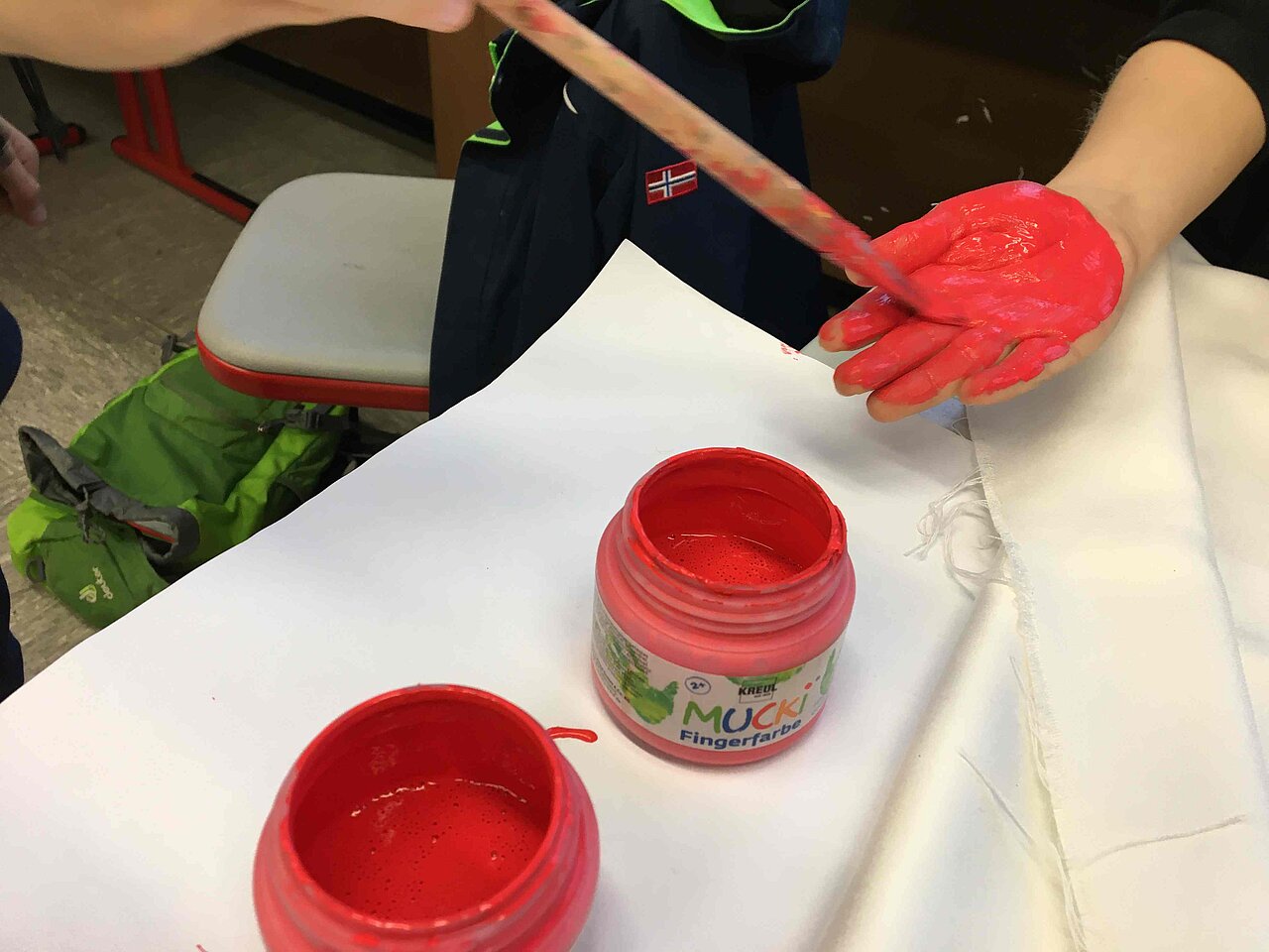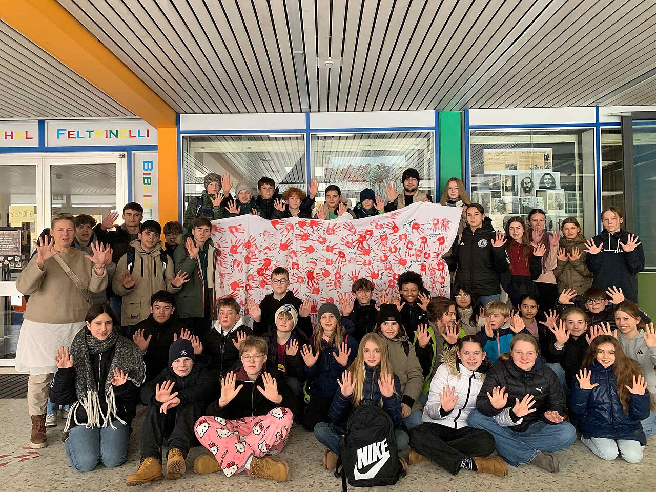 Bereits am 29.1.26 druckten am Hainberg-Gymnasium beim letzten UNESCO-Beauftragten-Treffen aller Jahrgänge Schüler*innen ihre roten Handabdrücke auf ein weißes Tuch und zeigten somit ihren Protest gegen Kindersoldat*innen und warben für eine gute Zukunft von Kindern in aller Welt.